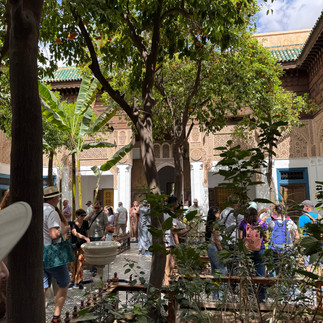 The minaret will also serve as a direction point and meeting place for tour excursion into the Jemaa el-Fnaa market. It is impressive and one would have to believe the interior is really nice. We get our photo taken in front of the minaret as a group and then get back on the motor coach for a short ride to the Bahia Palace.