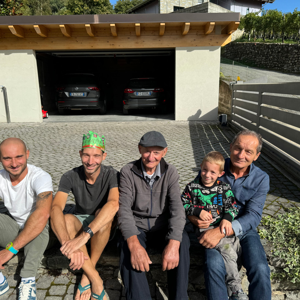 Four generations of Pinalli. Alessandro (33), Mattia (40), Remo (92), Giacomo (4) and Alfio (67).