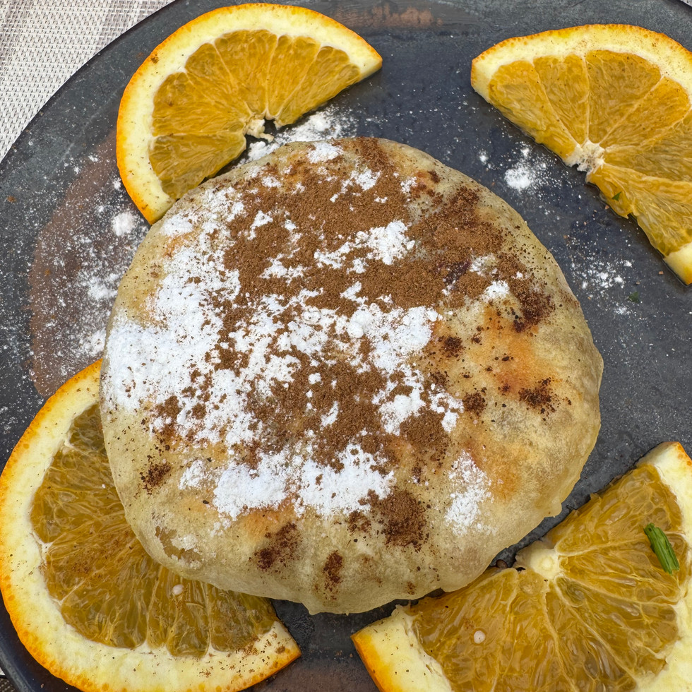 I ordered a dished called Pastilla au Poulet. Chicken pastilla is traditional Moroccan dish made with eggs and almonds, with filo pastry, saffron, cinnamon, parsley, and butter. The woman we were sharing the table with said it was a good choice. Once we confirmed it had no raisins in it I confirmed the order. It was very good. All the ingredients in inside the pastry and the pastry was covered in powdered sugar and cinnamon. More a dessert than a main dish but well worth it.